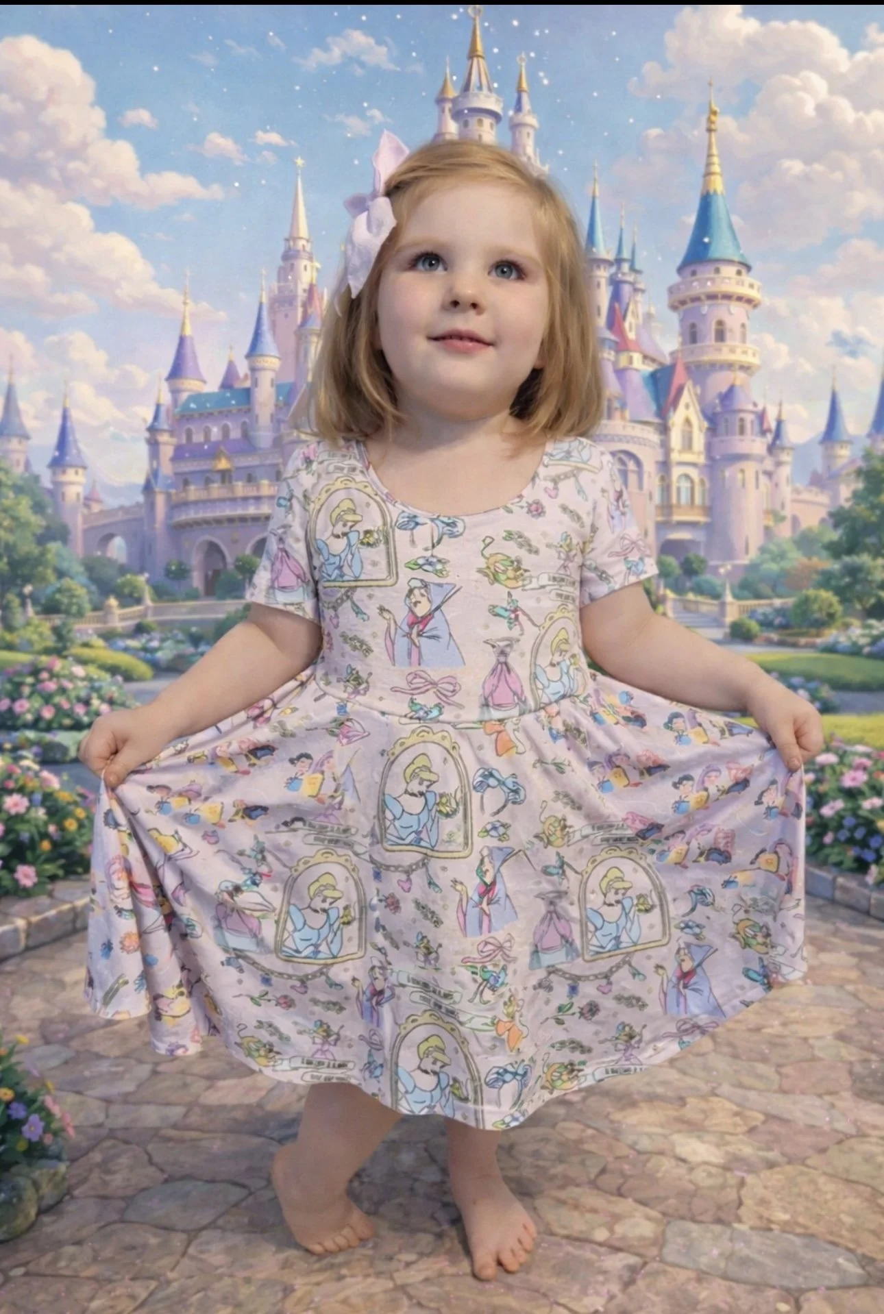 Fit for a princess Girls Dress with adorable bow details to the back will make her wardrobe a little more fairytale like. This charming summer dress, featuring playful character patterns that capture childhood wonder. Delicate bows in the back add a touch of whimsy and movement, while the relaxed fit ensures all-day comfort for warm-weather adventures. Perfect for casual outings, playdates, or family gatherings, this dress combines style with practicality.